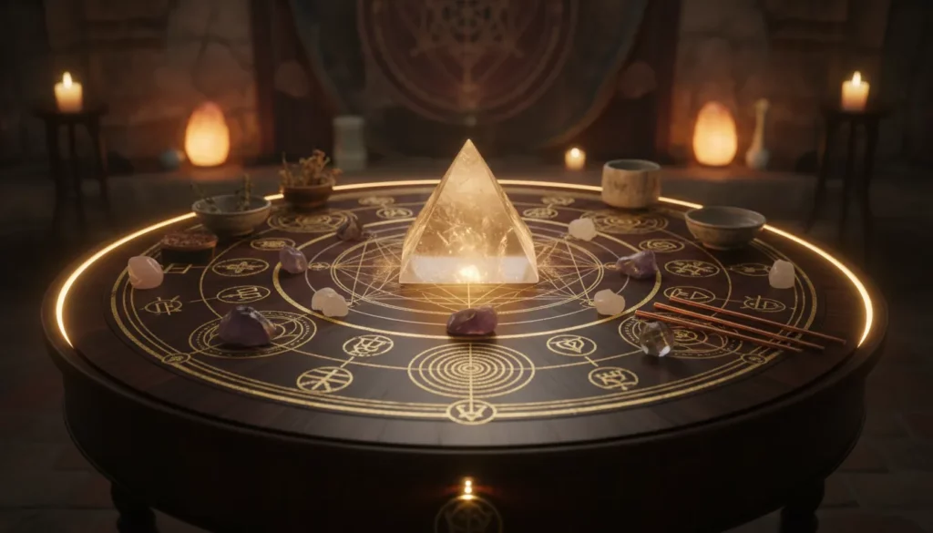 - Símbolos de Geometria Sagrada: Para harmonizar e equilibrar o campo energético.