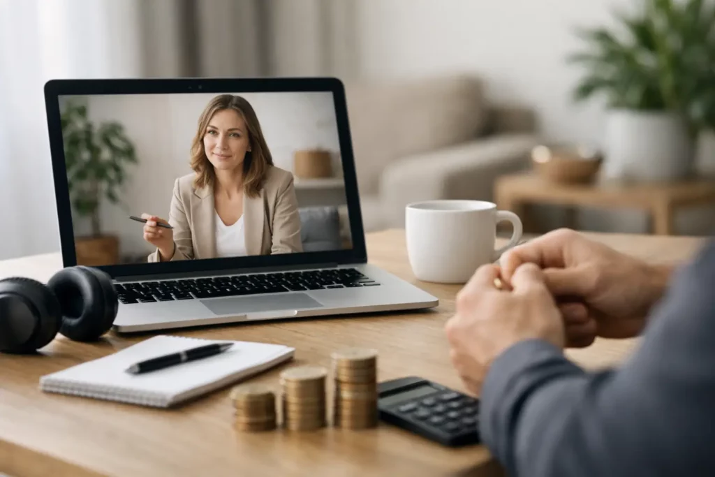 Outro ponto é a duração da sessão. Em geral, o atendimento online costuma durar entre 45 minutos e 1 hora. Quando a sessão é mais longa, o valor pode subir. Também pode haver diferença entre uma consulta avulsa e um acompanhamento contínuo.